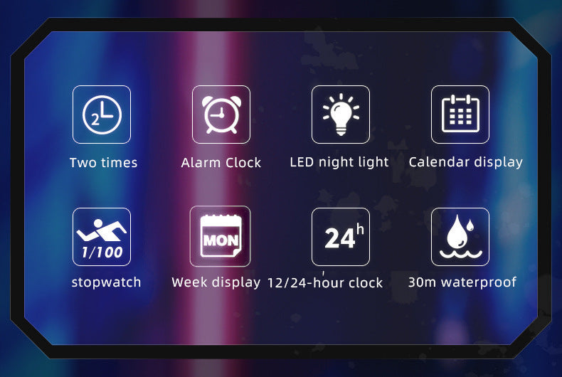 Whether you're navigating a busy schedule, hitting the gym, or exploring the outdoors, the Multi-functional Watch delivers the perfect blend of standout style, essential features, and reliable durability. Its large dial and sporty design make it an unmissable accessory.